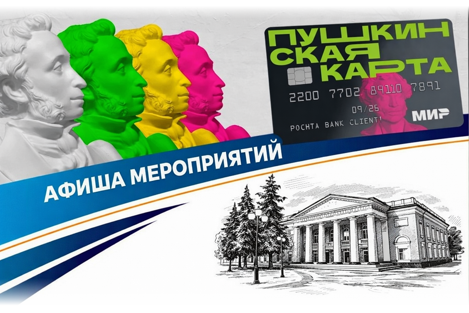 Государственная программа для молодёжи 14–22 лет: ежегодно начисляется 5 000 ₽ на культурные события. С 2026 года оператором становится ВТБ — карту нужно переоформить/перенести, если она была в Почта Банке.